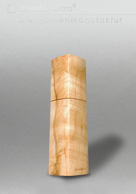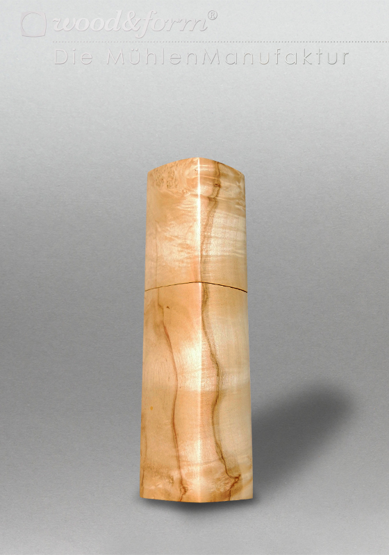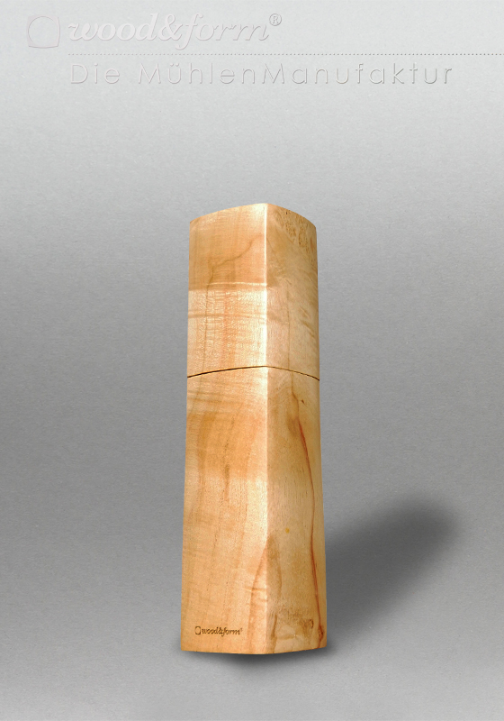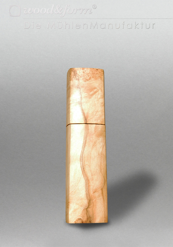The multiple soaking with hard oil offers solid protection and gives the wood structure depth and plasticity. The elaborate surface treatment gives our mills a pleasant, velvety feel.